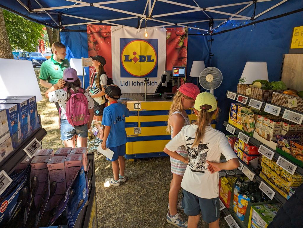 Darüber hinaus wurde der Supermarktbereich neu gestaltet: Die Lidl GmbH hat einen vollständig ausgestatteten Mini-Supermarkt mit funktionierendem Kassensystem eingerichtet, in dem die Kinder das Einkaufen in realistischer Umgebung hautnah erleben können.